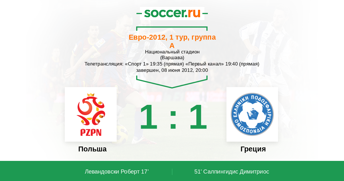 Телетрансляция: «Спорт 1» 19:35 (прямая) «Первый канал» 19:40 (прямая)