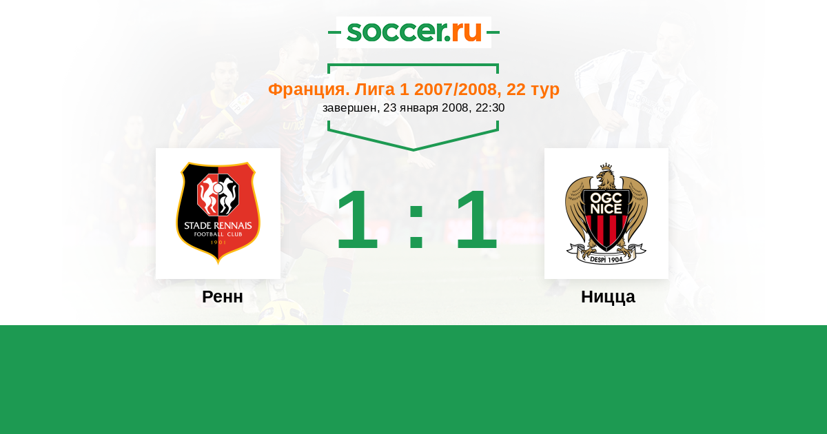 Франция. Лига 1 19.08.2007 Ницца Логотип футбольный клуб Ницца 1:1 Логотип футбольный клуб Ренн Ренн