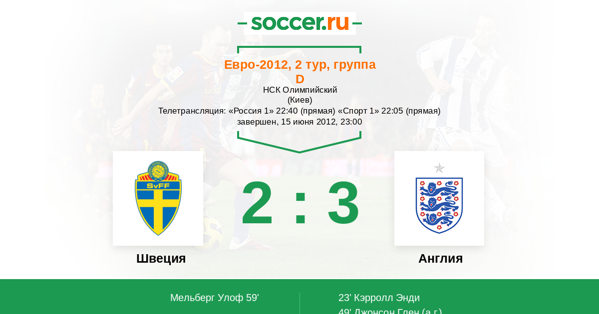 59' (1:2) Гол со штрафного Мельберг Улоф (Ларссон Себастьян)