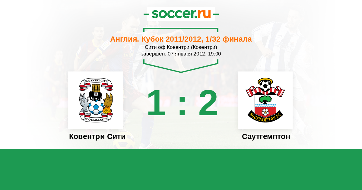 Англия. Чемпионшип 28.04.2012 Саутгемптон Логотип футбольный клуб Саутгемптон 4:0 Логотип футбольный клуб Ковентри Сити Ковентри Сити