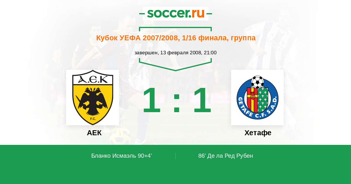 Протокол матча АЕК против Хетафе