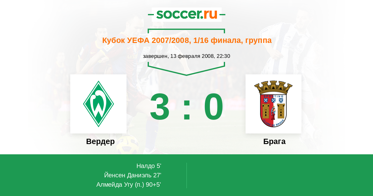 Протокол матча Вердер против Брага