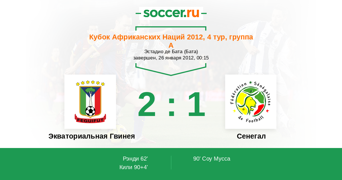 Протокол матча Экваториальная Гвинея против Сенегал