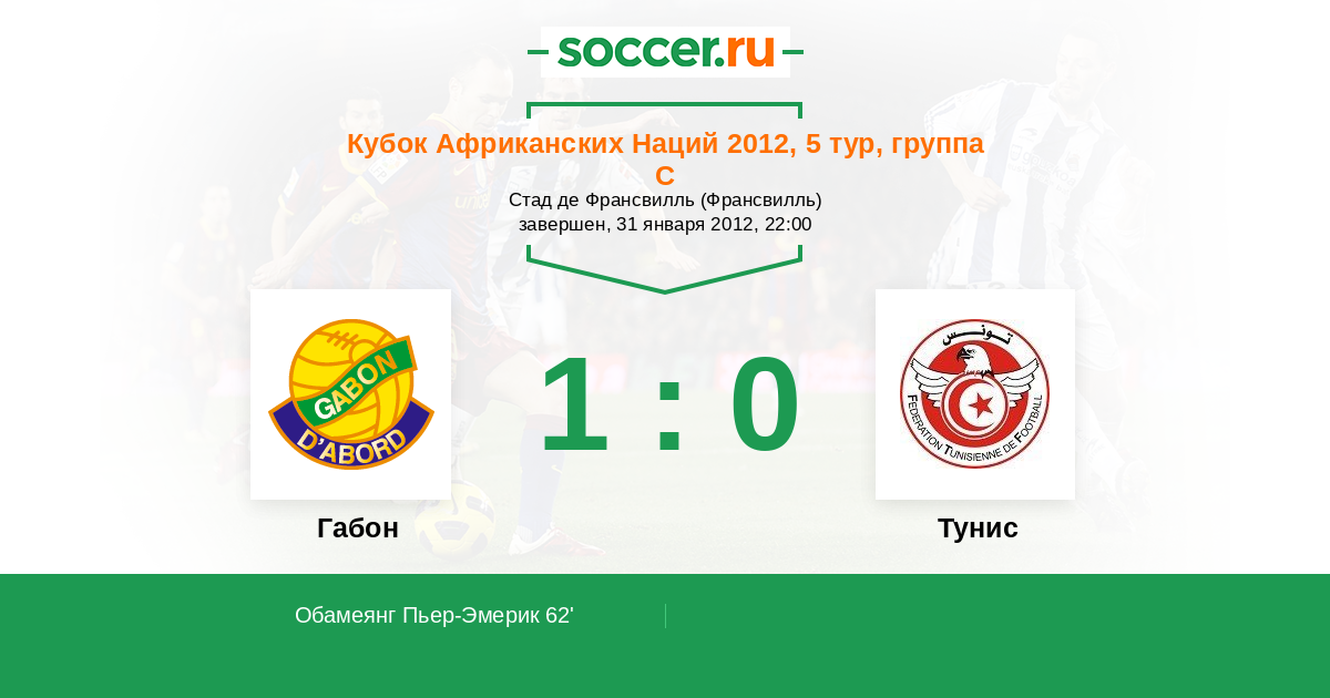 Протокол матча Габон против Тунис