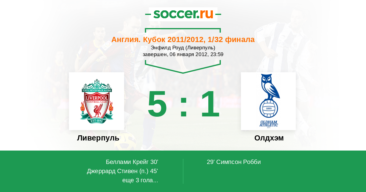 Протокол матча Ливерпуль против Олдхэм
