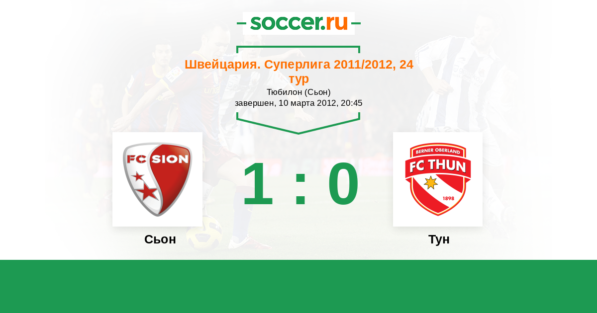 Швейцария. Суперлига 20.10.2012 Тун Логотип футбольный клуб Тун 1:1 Логотип футбольный клуб Сьон Сьон