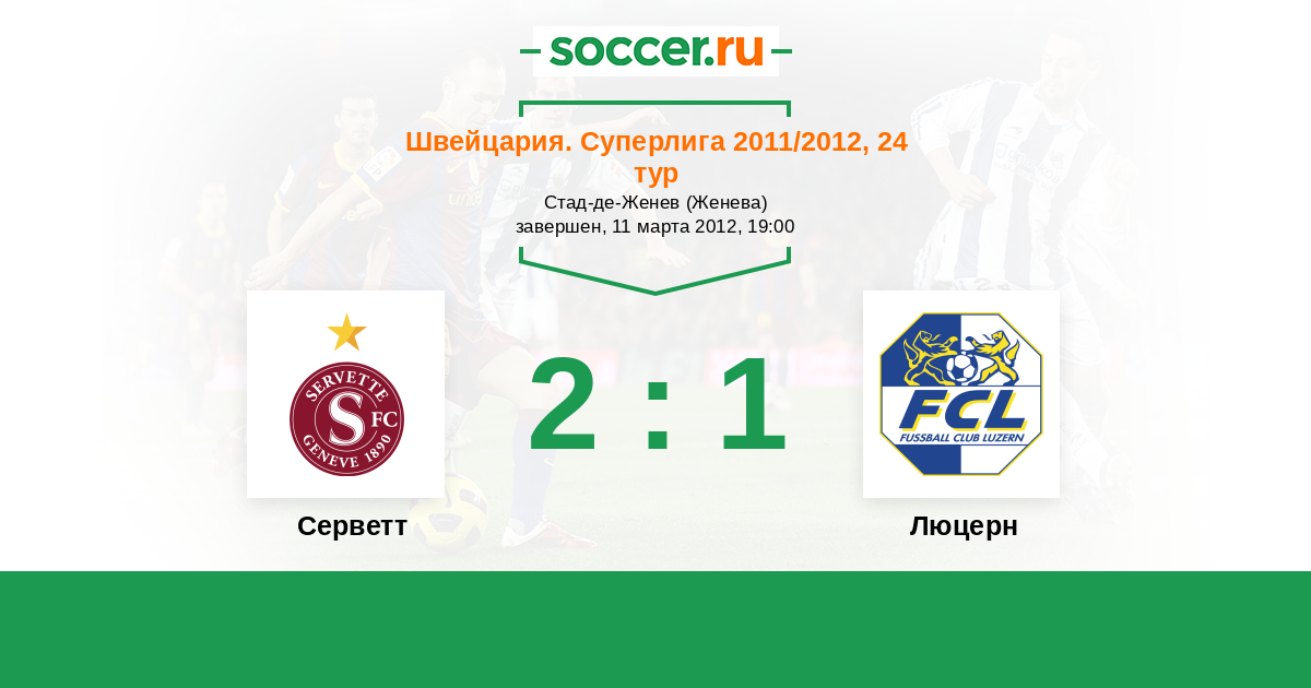 Швейцария. Суперлига 21.04.2012 Люцерн Логотип футбольный клуб Люцерн 3:1 Логотип футбольный клуб Серветт (Женева) Серветт
