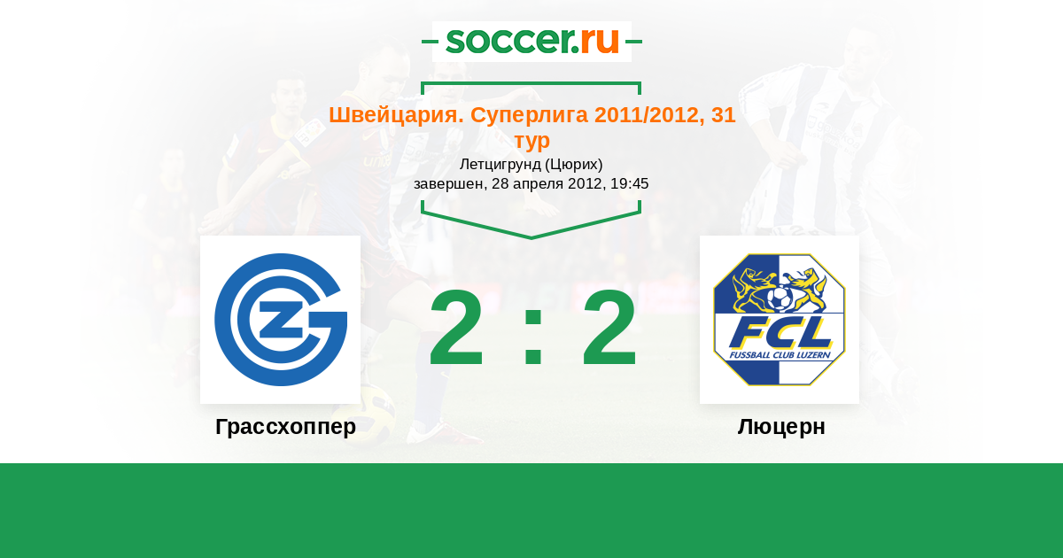 Швейцария. Суперлига 25.03.2012 Люцерн Логотип футбольный клуб Люцерн 1:0 Логотип футбольный клуб Грассхоппер (Цюрих) Грассхоппер