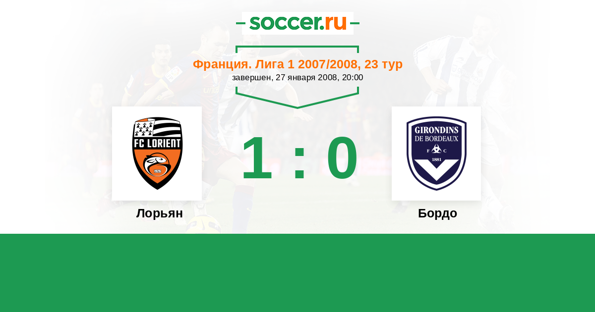 Франция. Лига 1 25.08.2007 Бордо Логотип футбольный клуб Бордо 2:2 Логотип футбольный клуб Лорьян Лорьян