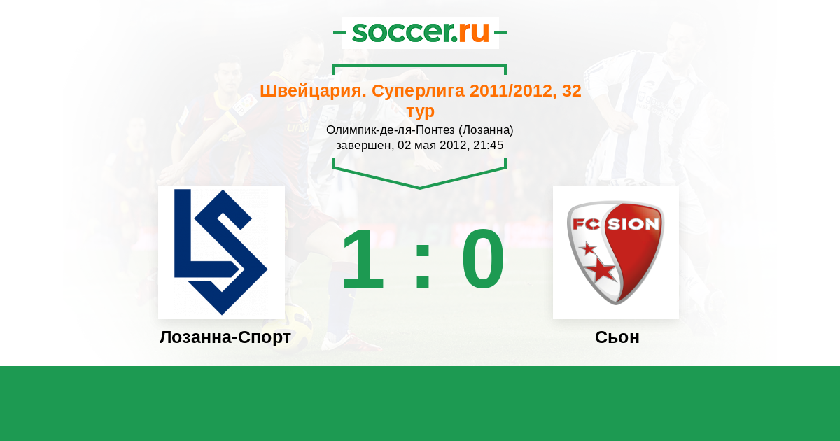 Швейцария. Суперлига 25.03.2012 Сьон Логотип футбольный клуб Сьон 1:0 Логотип футбольный клуб Лозанна-Спорт Лозанна-Спорт