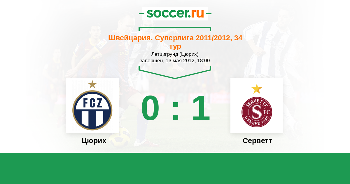 Швейцария. Суперлига 18.03.2012 Серветт Логотип футбольный клуб Серветт (Женева) 1:1 Логотип футбольный клуб Цюрих Цюрих