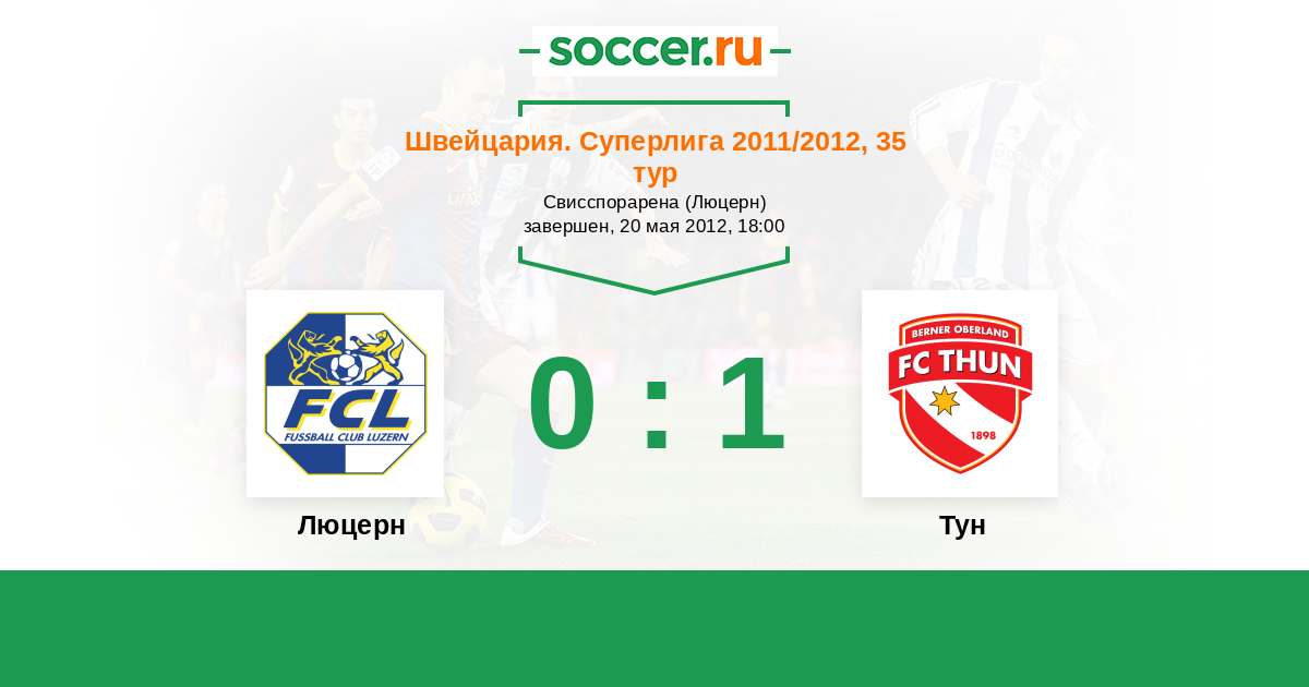 Швейцария. Суперлига 20.04.2011 Люцерн Логотип футбольный клуб Люцерн 0:1 Логотип футбольный клуб Тун Тун