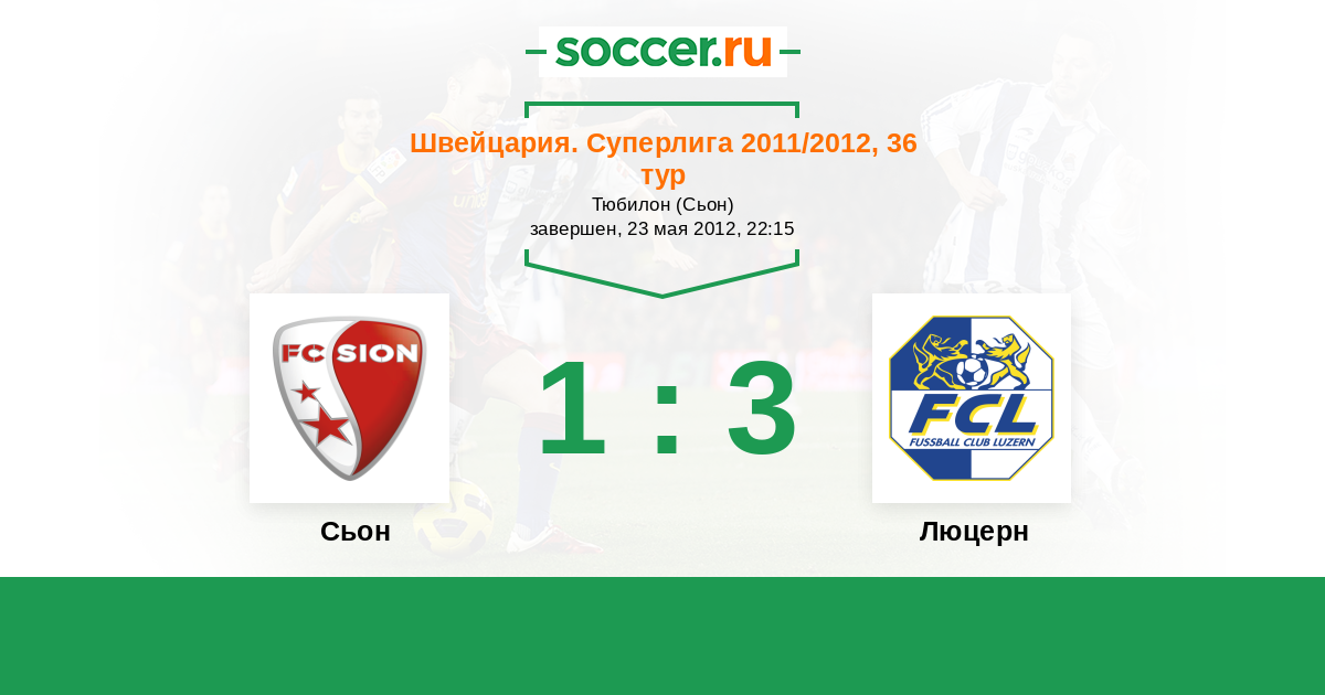 Швейцария. Суперлига 29.07.2012 Люцерн Логотип футбольный клуб Люцерн 0:3 Логотип футбольный клуб Сьон Сьон