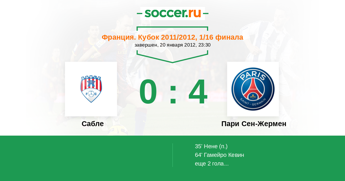 Протокол матча Сабле против Пари Сен-Жермен
