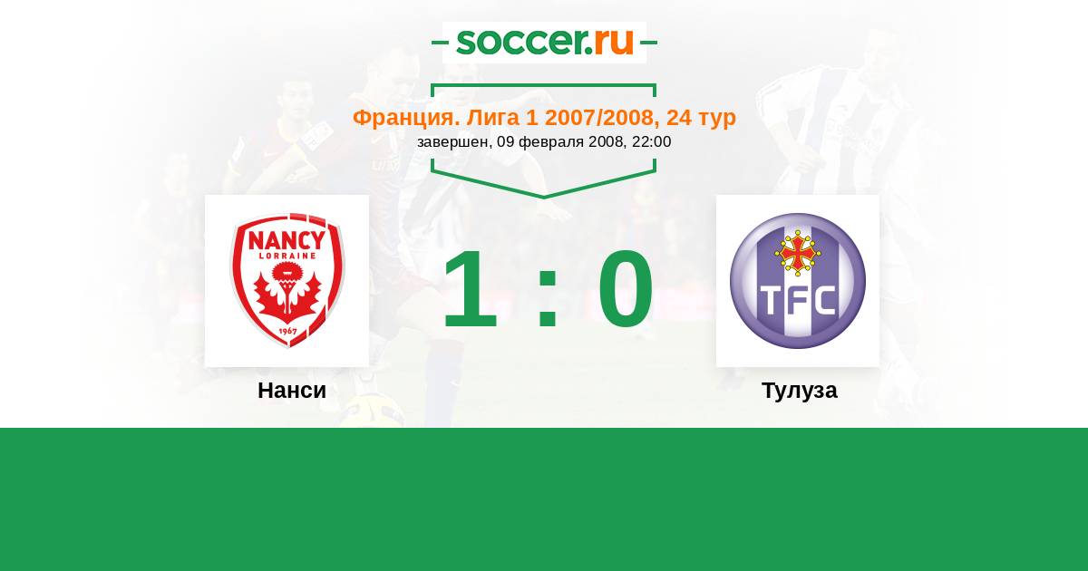 Франция. Лига 1 05.12.2007 Тулуза Логотип футбольный клуб Тулуза 1:1 Логотип футбольный клуб Нанси Нанси