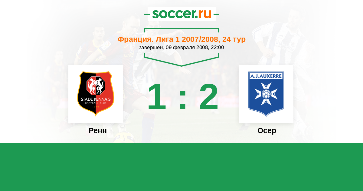 Франция. Лига 1 29.08.2007 Осер Логотип футбольный клуб Осер 0:2 Логотип футбольный клуб Ренн Ренн