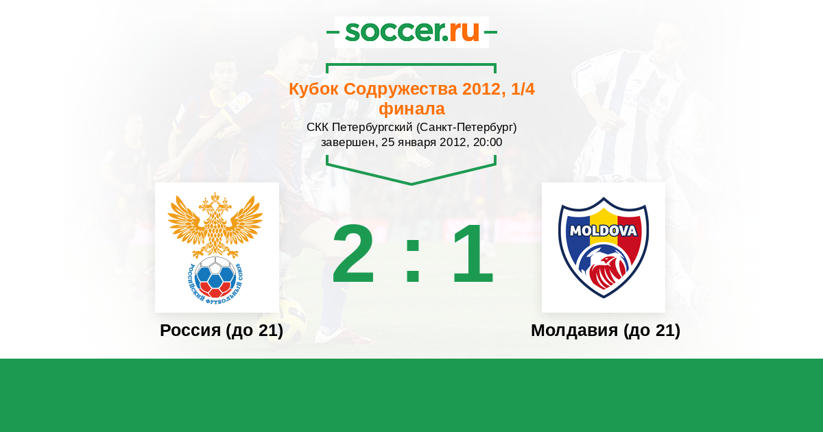Кубок Содружества 23.01.2016 Молдавия (до 21) Логотип Молдавия (до 21) 2:4 Логотип Россия (до 21) Россия (до 21)