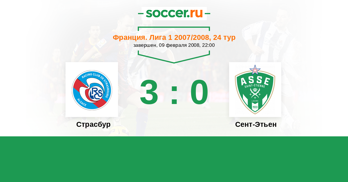Франция. Лига 1 29.08.2007 Сент-Этьен Логотип футбольный клуб Сент-Этьен 2:0 Логотип футбольный клуб Страсбур Страсбур