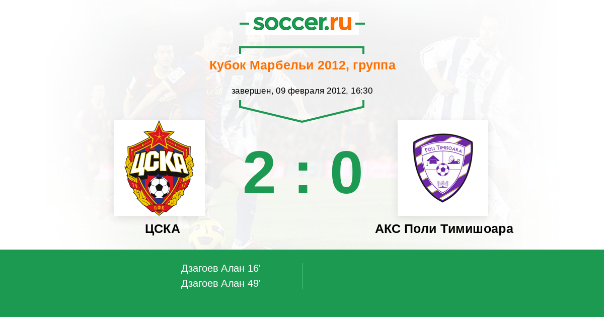 Протокол матча ЦСКА против АКС Поли Тимишоара