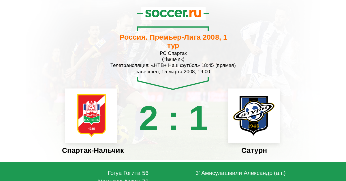 Протокол матча Спартак-Нальчик против Сатурн