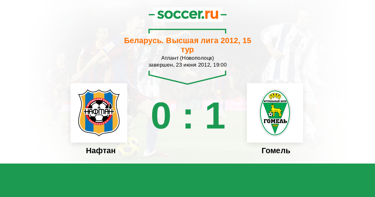Беларусь. Высшая лига 22.09.2012 Гомель Логотип футбольный клуб Гомель 2:0 Логотип футбольный клуб Нафтан (Новополоцк) Нафтан