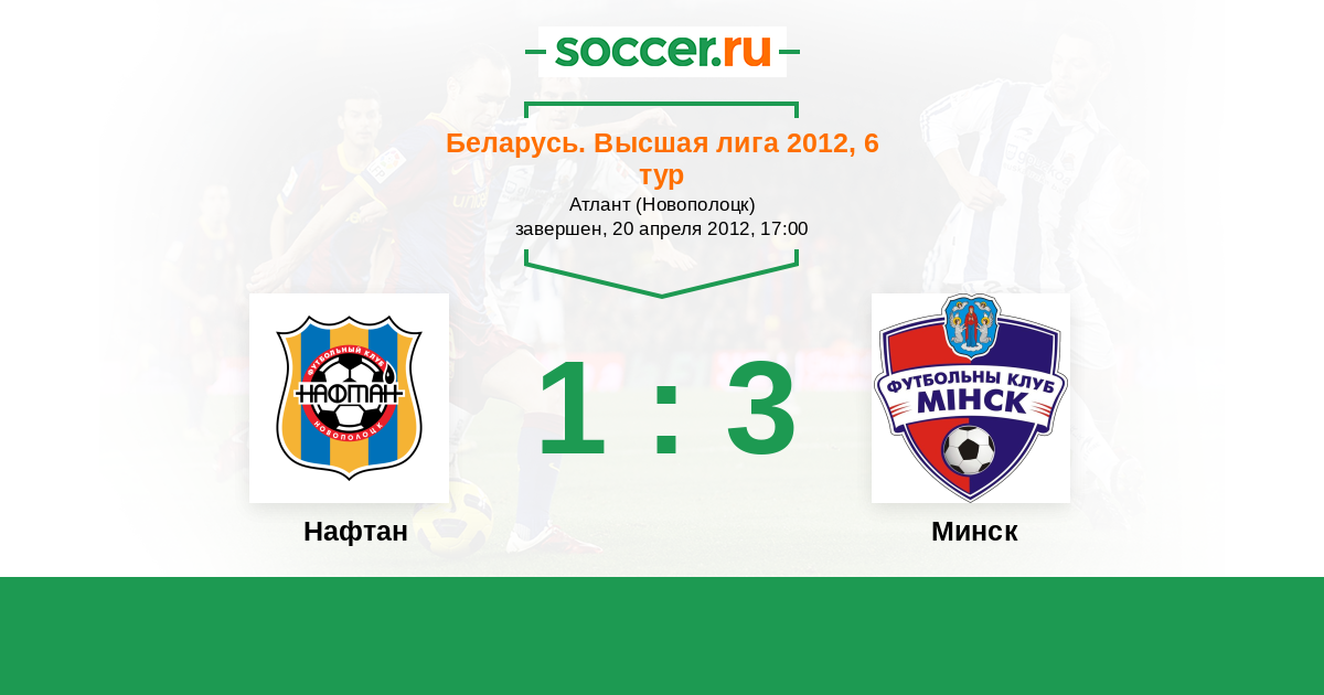 Беларусь. Высшая лига 01.07.2012 Минск Логотип футбольный клуб Минск 1:0 Логотип футбольный клуб Нафтан (Новополоцк) Нафтан