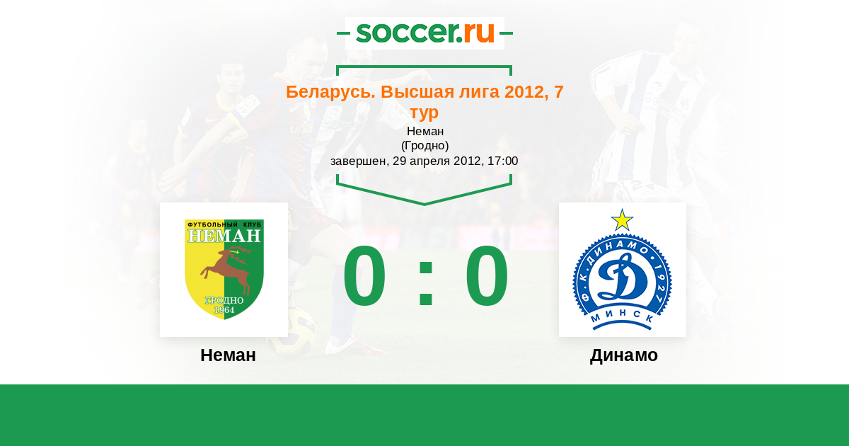 Беларусь. Высшая лига 08.07.2012 Динамо Логотип футбольный клуб Динамо (Минск) 1:1 Логотип футбольный клуб Неман (Гродно) Неман