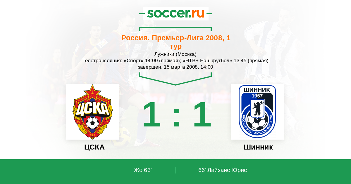 Протокол матча ЦСКА против Шинник
