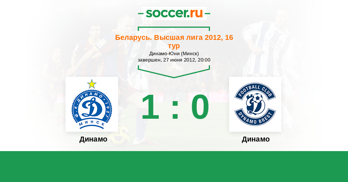 Беларусь. Высшая лига 30.09.2012 Динамо Логотип футбольный клуб Динамо (Брест) 2:0 Логотип футбольный клуб Динамо (Минск) Динамо