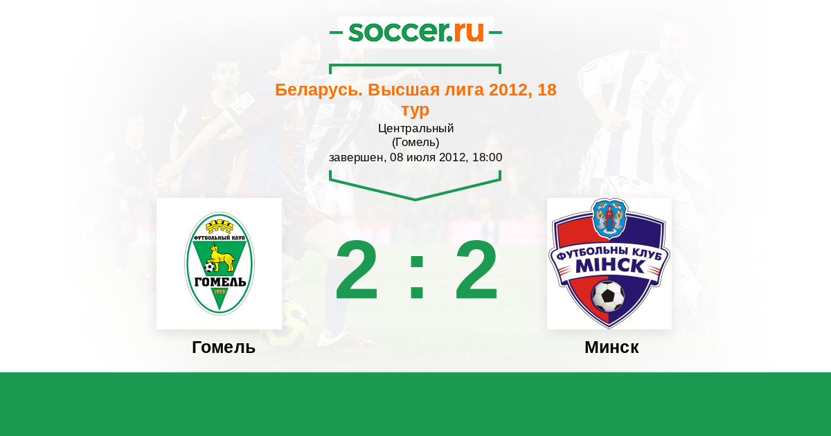 Беларусь. Высшая лига 29.09.2012 Минск Логотип футбольный клуб Минск 1:1 Логотип футбольный клуб Гомель Гомель