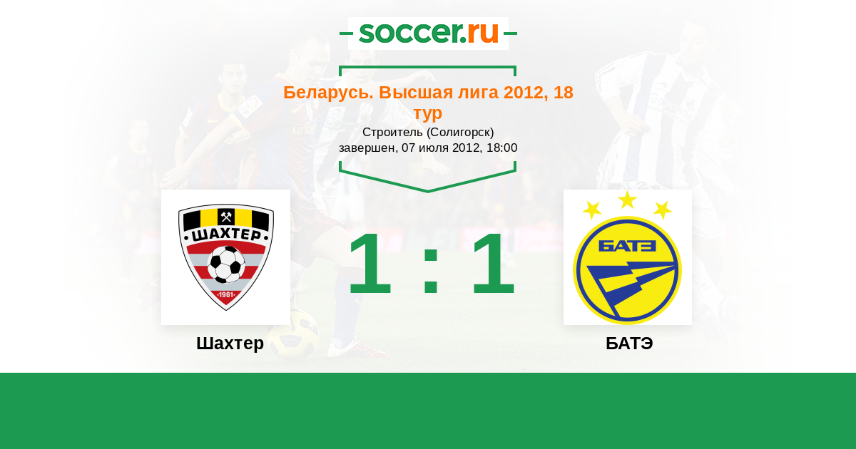 Беларусь. Высшая лига 09.09.2011 Шахтер Логотип футбольный клуб Шахтер (Солигорск) 0:0 Логотип футбольный клуб БАТЭ (Борисов) БАТЭ