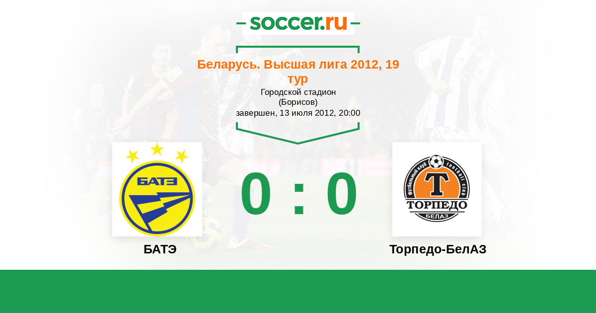 Беларусь. Высшая лига 15.09.2012 БАТЭ Логотип футбольный клуб БАТЭ (Борисов) 2:0 Логотип футбольный клуб Торпедо-БелАЗ (Жодино) Торпедо-БелАЗ