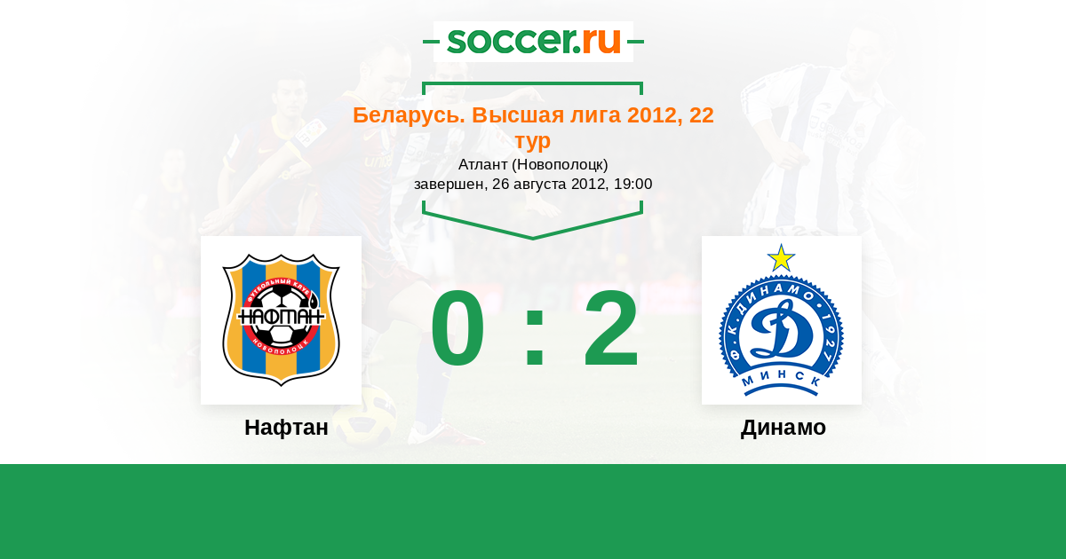 Беларусь. Высшая лига 07.10.2012 Динамо Логотип футбольный клуб Динамо (Минск) 1:1 Логотип футбольный клуб Нафтан (Новополоцк) Нафтан