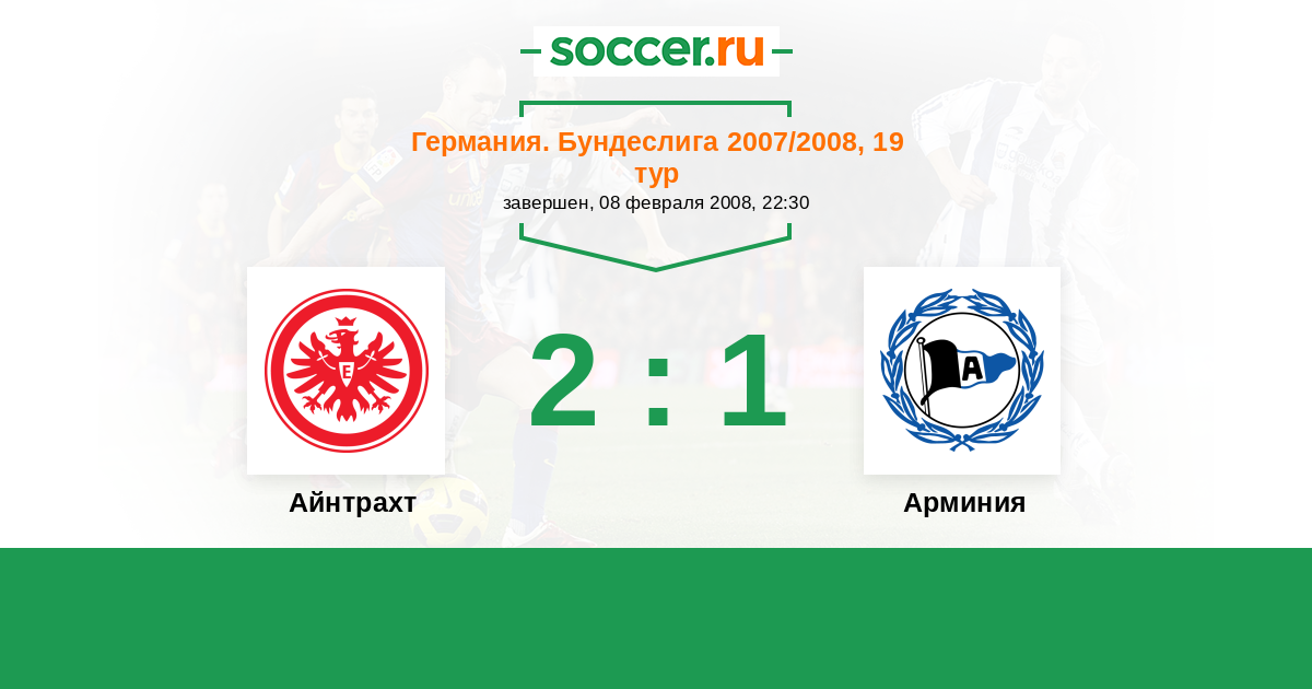 Германия. Бундеслига 28.09.2008 Айнтрахт Логотип футбольный клуб Айнтрахт (Франкфурт) 1:1 Логотип футбольный клуб Арминия (Билефельд) Арминия