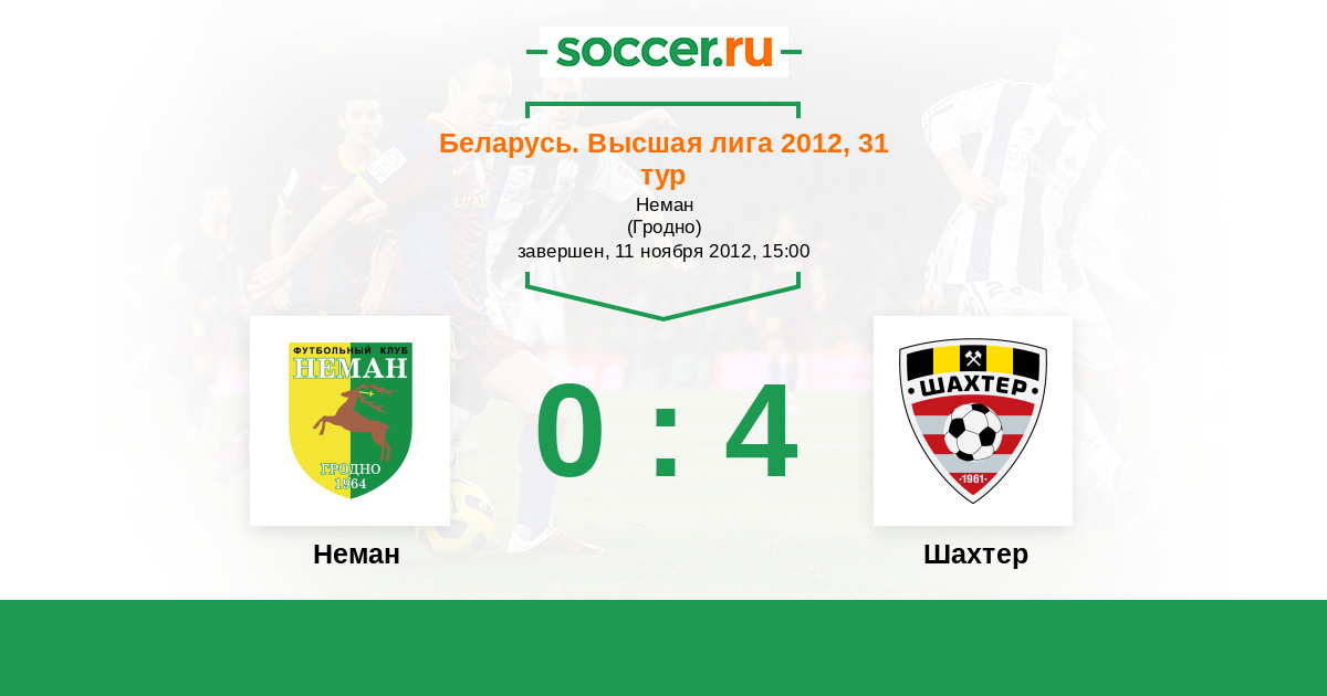 Беларусь. Высшая лига 12.06.2011 Шахтер Логотип футбольный клуб Шахтер (Солигорск) 5:0 Логотип футбольный клуб Неман (Гродно) Неман