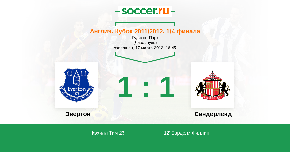 Протокол матча Эвертон против Сандерленд