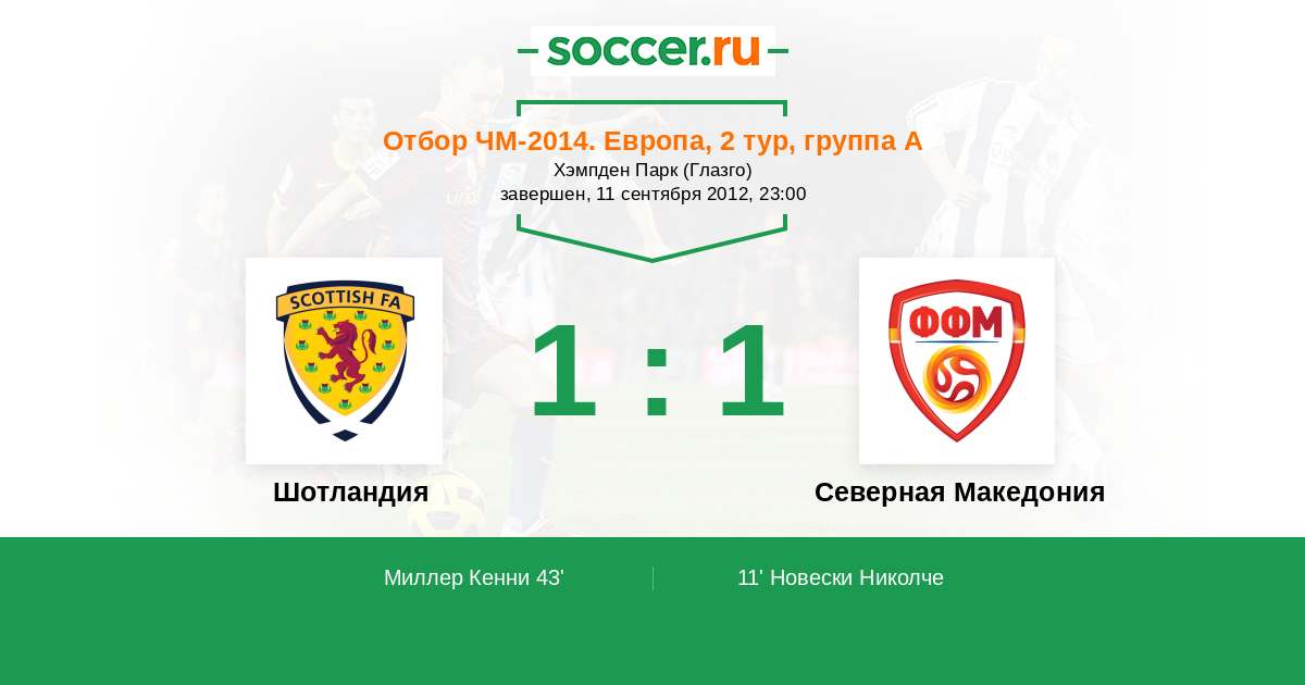 43' (1:1) Миллер Кенни (9) (Джейми Макки (15))