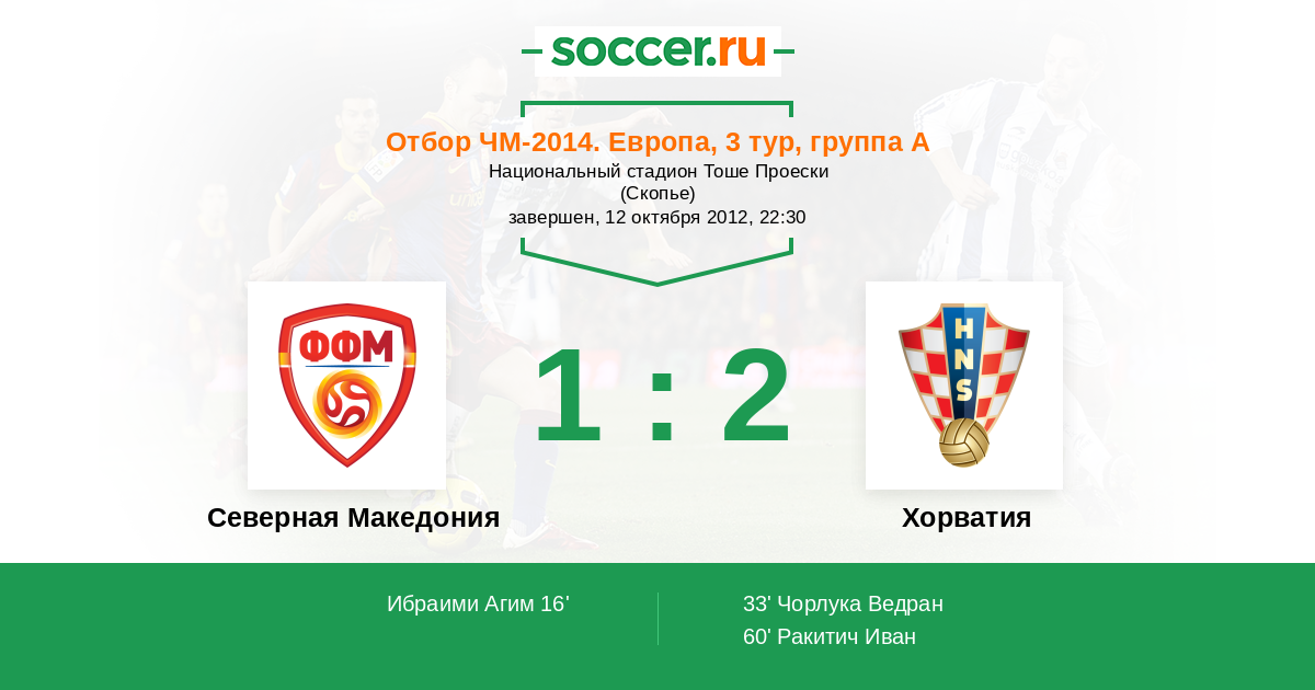 33' (1:1) Чорлука Ведран (5) (Ракитич Иван (7))