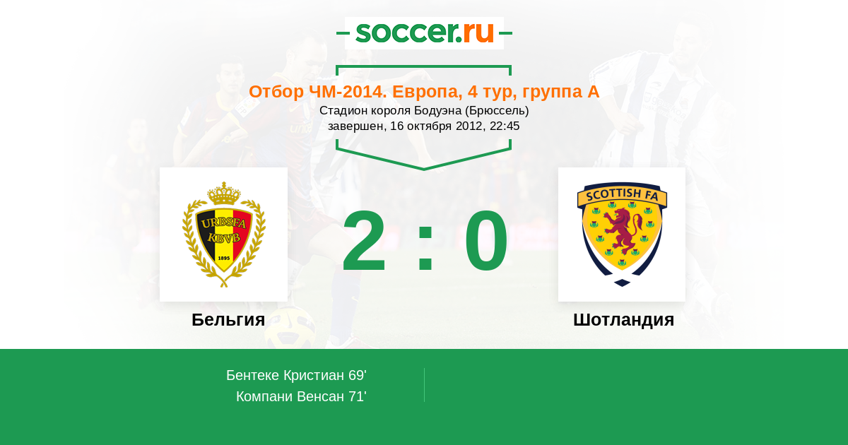 Протокол матча Бельгия против Шотландия