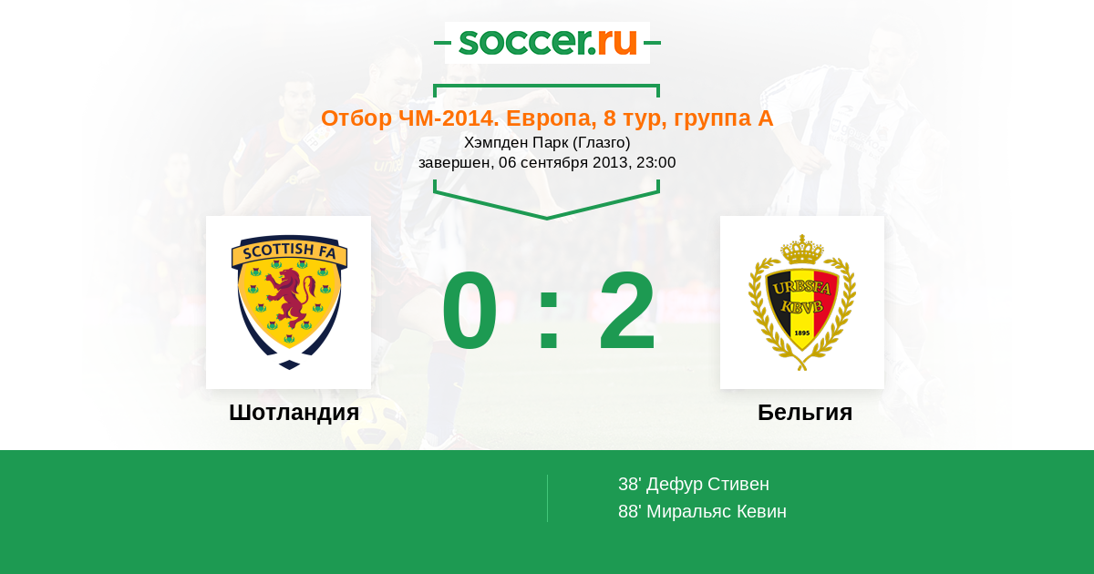 38' (0:1) Дефур Стивен (Де Брюйне Кевин)