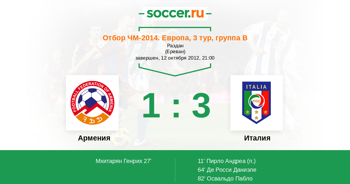 64' (1:2) Де Росси Даниэле (16) (Пирло Андреа (21))