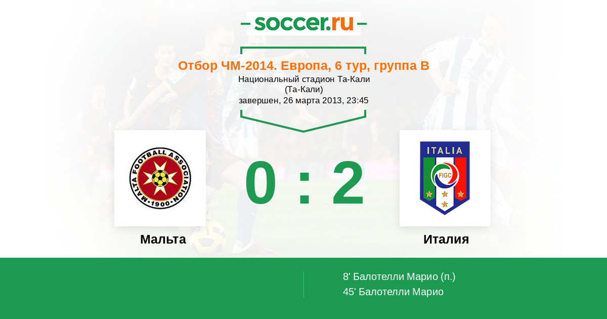 45' (0:2) Балотелли Марио (Де Шильо Маттиа)