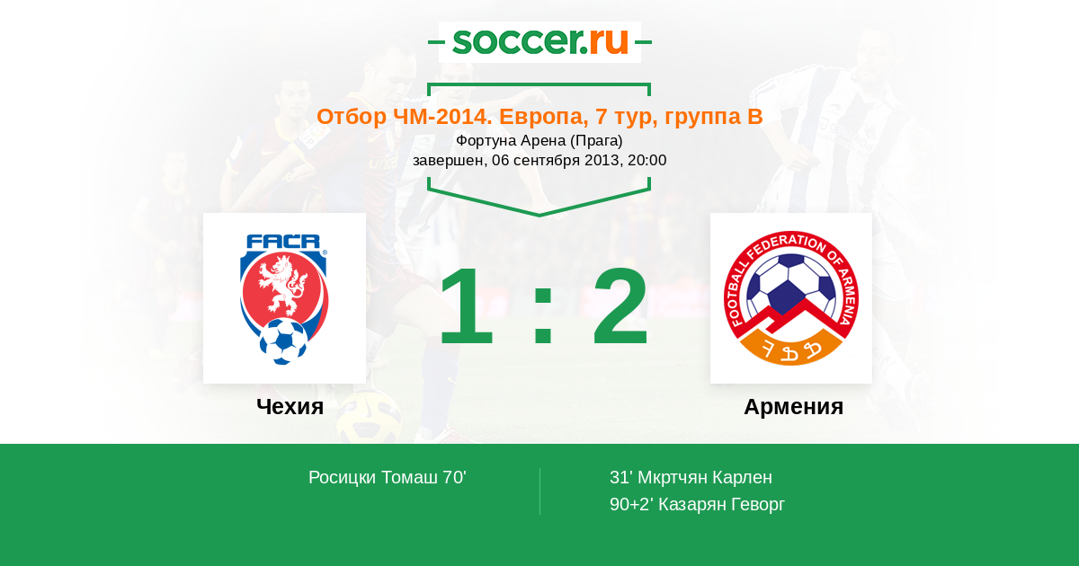 Протокол матча Чехия против Армения