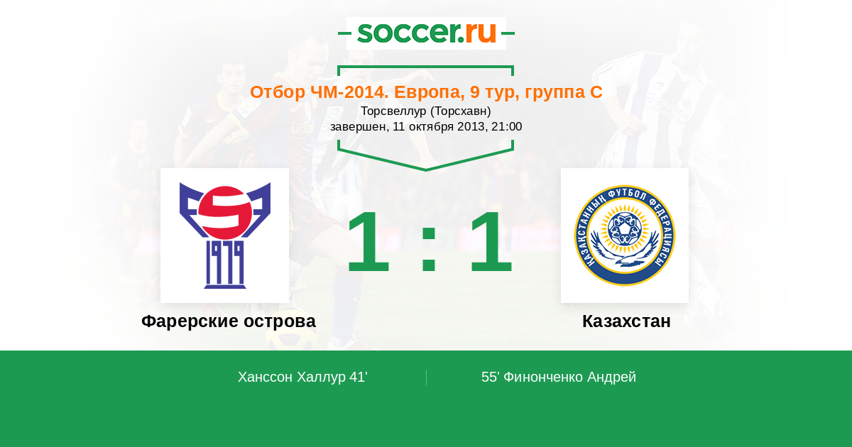 Протокол матча Фарерские острова против Казахстан