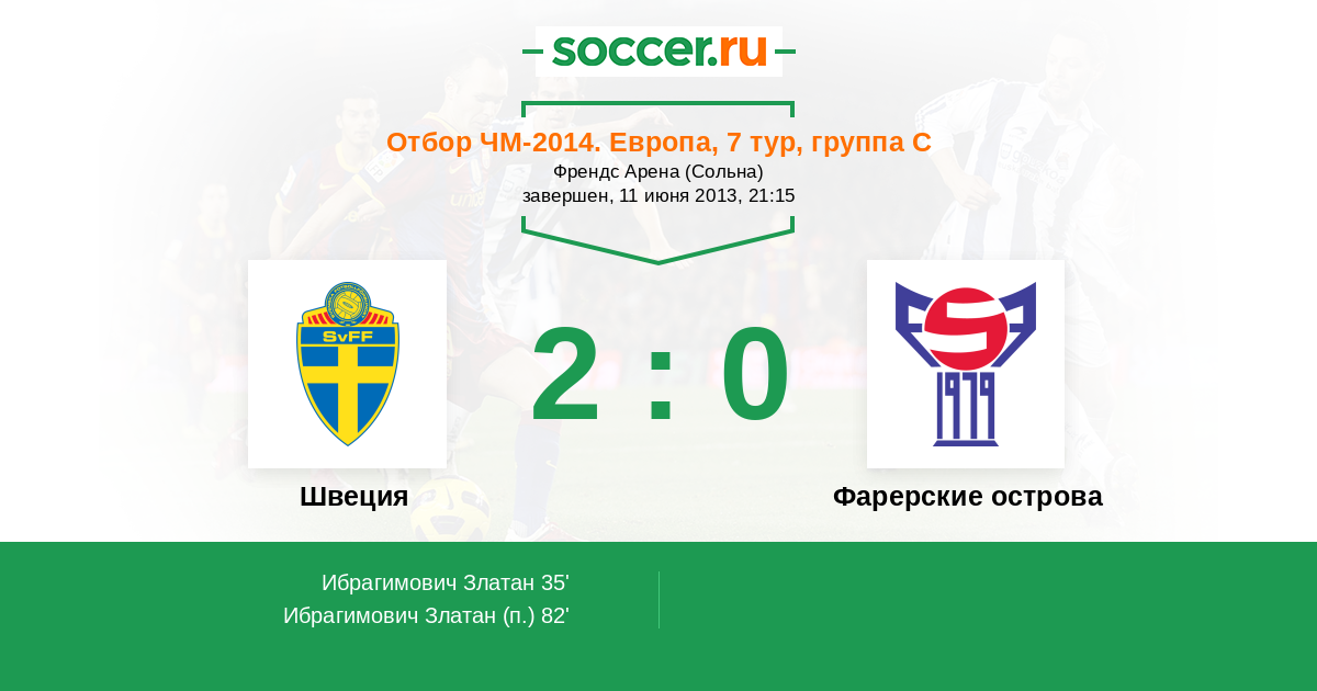 Протокол матча Швеция против Фарерские острова