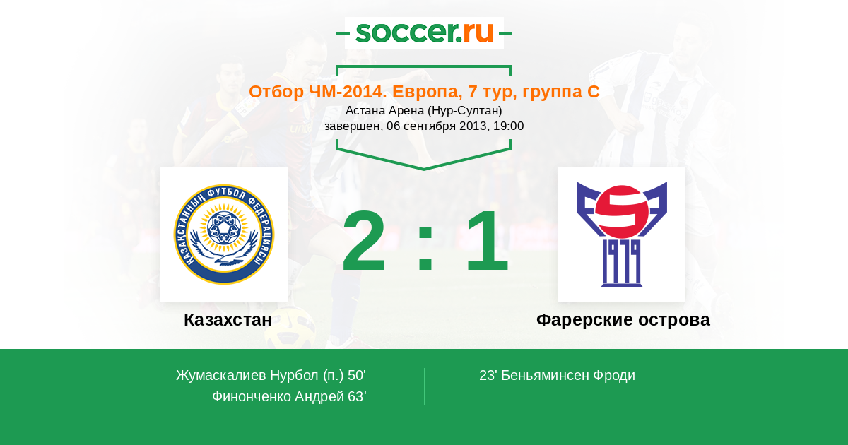 Протокол матча Казахстан против Фарерские острова