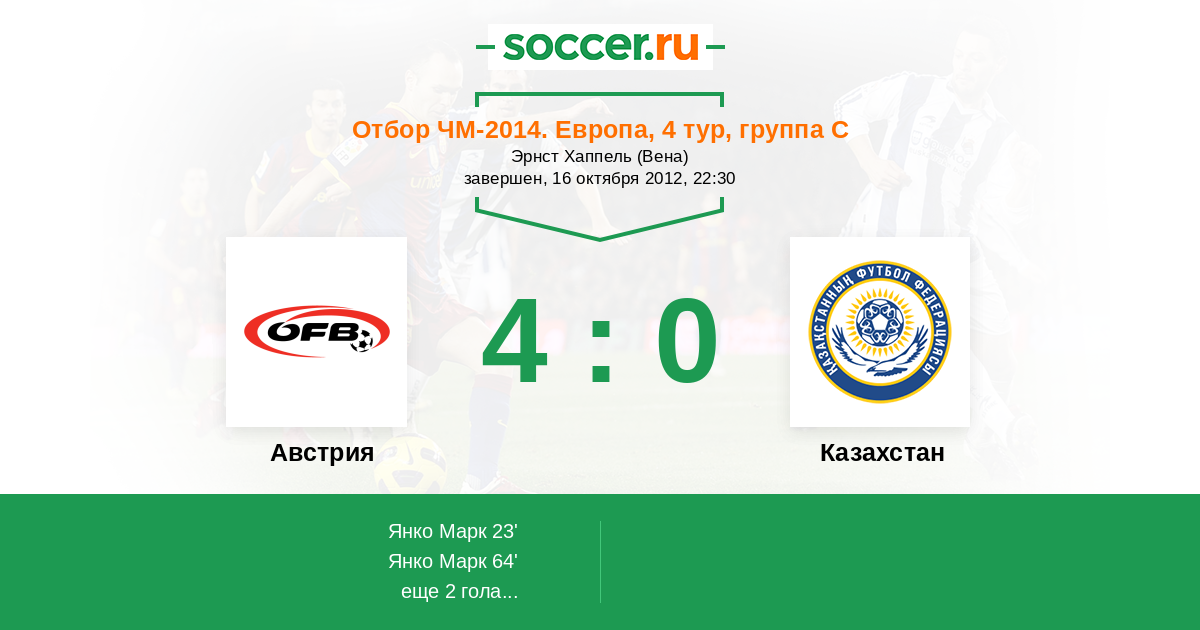 Протокол матча Австрия против Казахстан