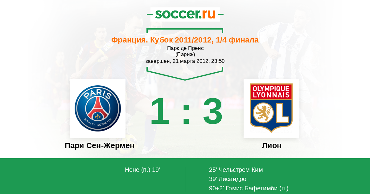 Протокол матча Пари Сен-Жермен против Лион