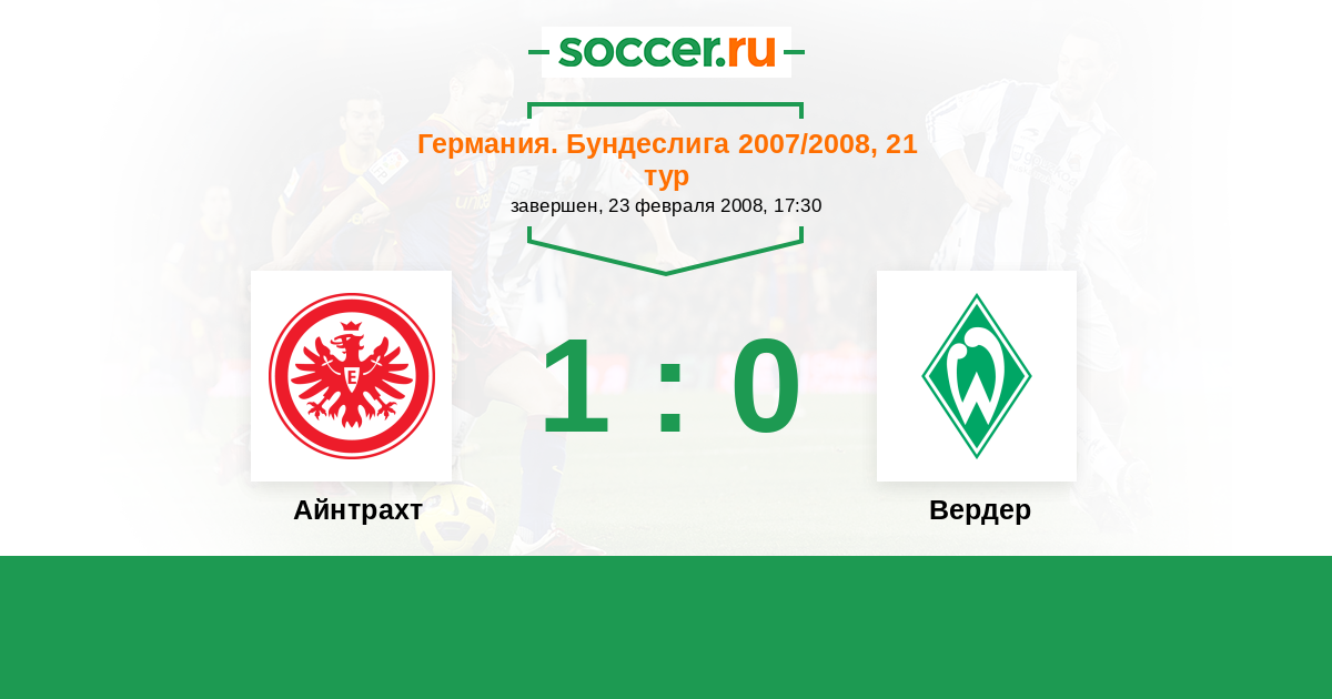 Германия. Бундеслига 01.09.2007 Вердер Логотип футбольный клуб Вердер (Бремен) 2:1 Логотип футбольный клуб Айнтрахт (Франкфурт) Айнтрахт