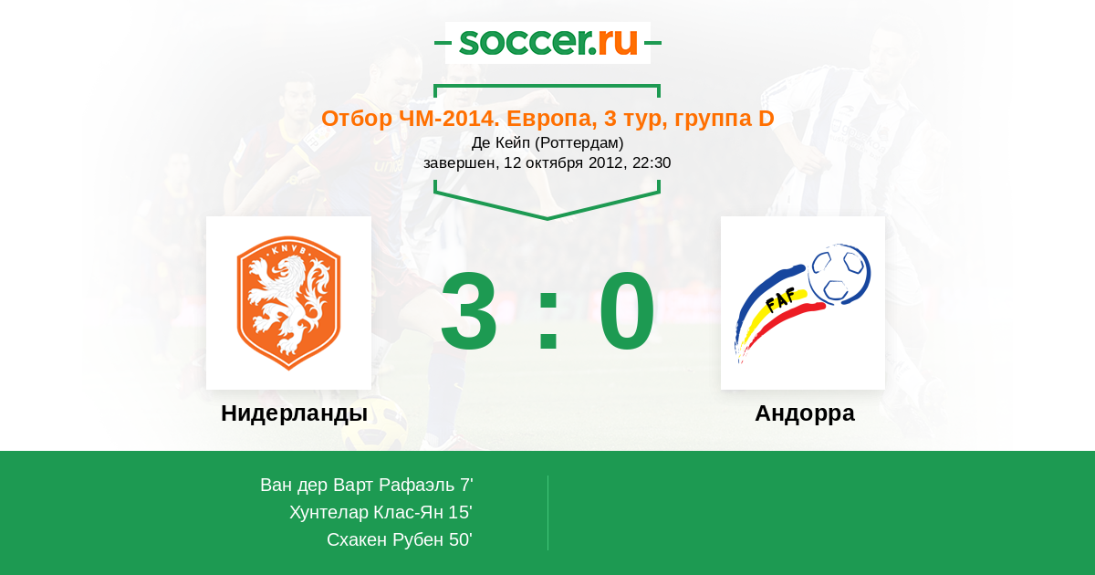 Протокол матча Нидерланды против Андорра